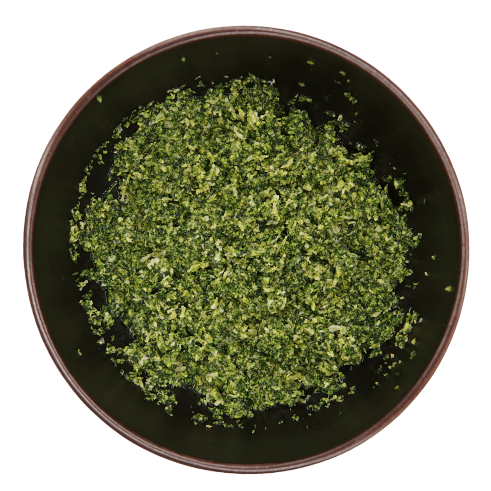 Unsere Brokkoli-Krümel sind etwas ganz Besonderes: gereinigte und gewaschene Brokkoli-Röschen mit nur einem kleinen Anteil von Blättern und Stielen, grießfein geschnitten (1-2mm), blanchiert und anschließend schonend getrocknet. Das dunkelgrüne Granulat schmeckt und riecht lecker nach Brokkoli und ist durch das Vorblanchieren auch ungekocht gut verträglich.