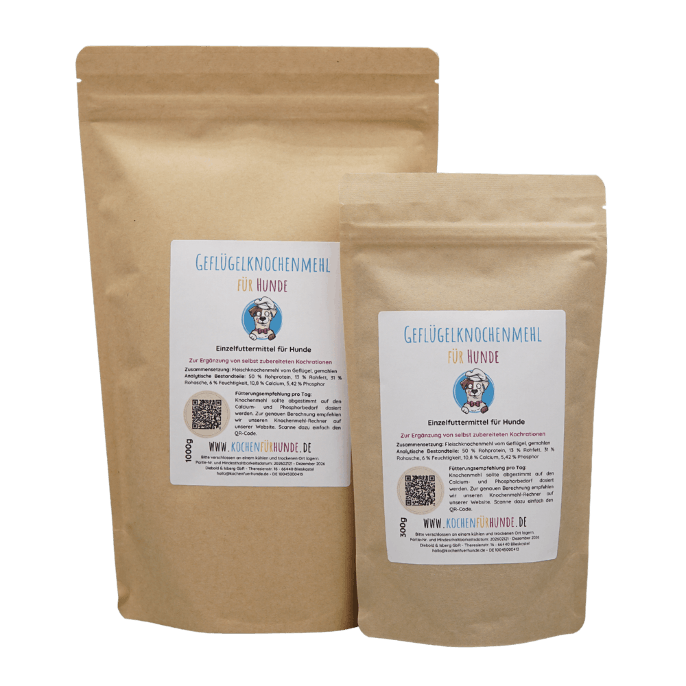 Daher bekommst du bei uns auch kleine Packungsgrößen, damit auch kleine Hunde das Fleischknochenmehl relativ zügig aufbrauchen können.