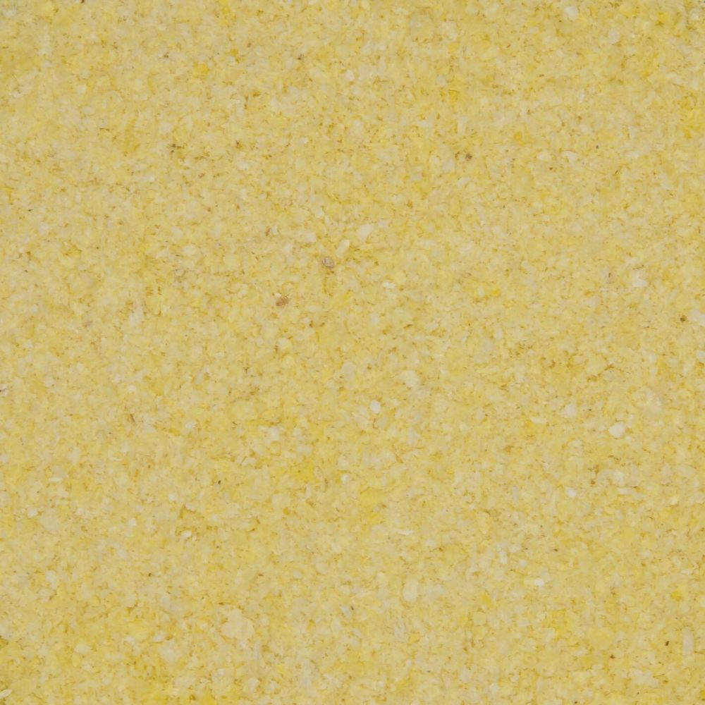 Die Konsistenz unseres Hirsebreis entspricht kleinen Flöckchen, die durch den feinen Mahlgrad und das Extrudieren (Druck- und Hitzezufuhr) eher Grieß ähneln und so sehr schnell und gut in Wasser auflösbar sind (siehe Bild 3). Damit unterscheidet er sich von den üblichen Hirseflocken für Hunde, die eher plattgewalzten Körnern ähneln und nicht so stark quellen.