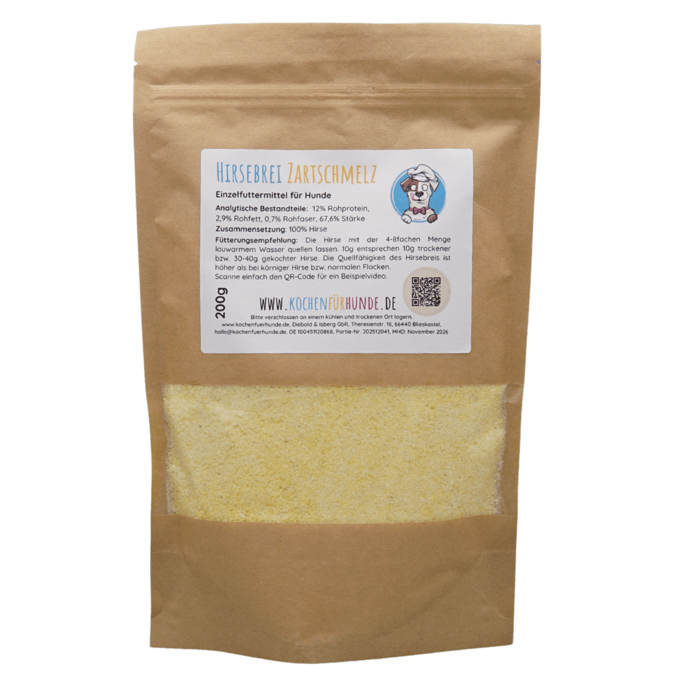 Deshalb haben wir auch normale Hirseflocken zusätzlich im Sortiment, damit du das wählen kannst, was für deinen Hund am besten passt.